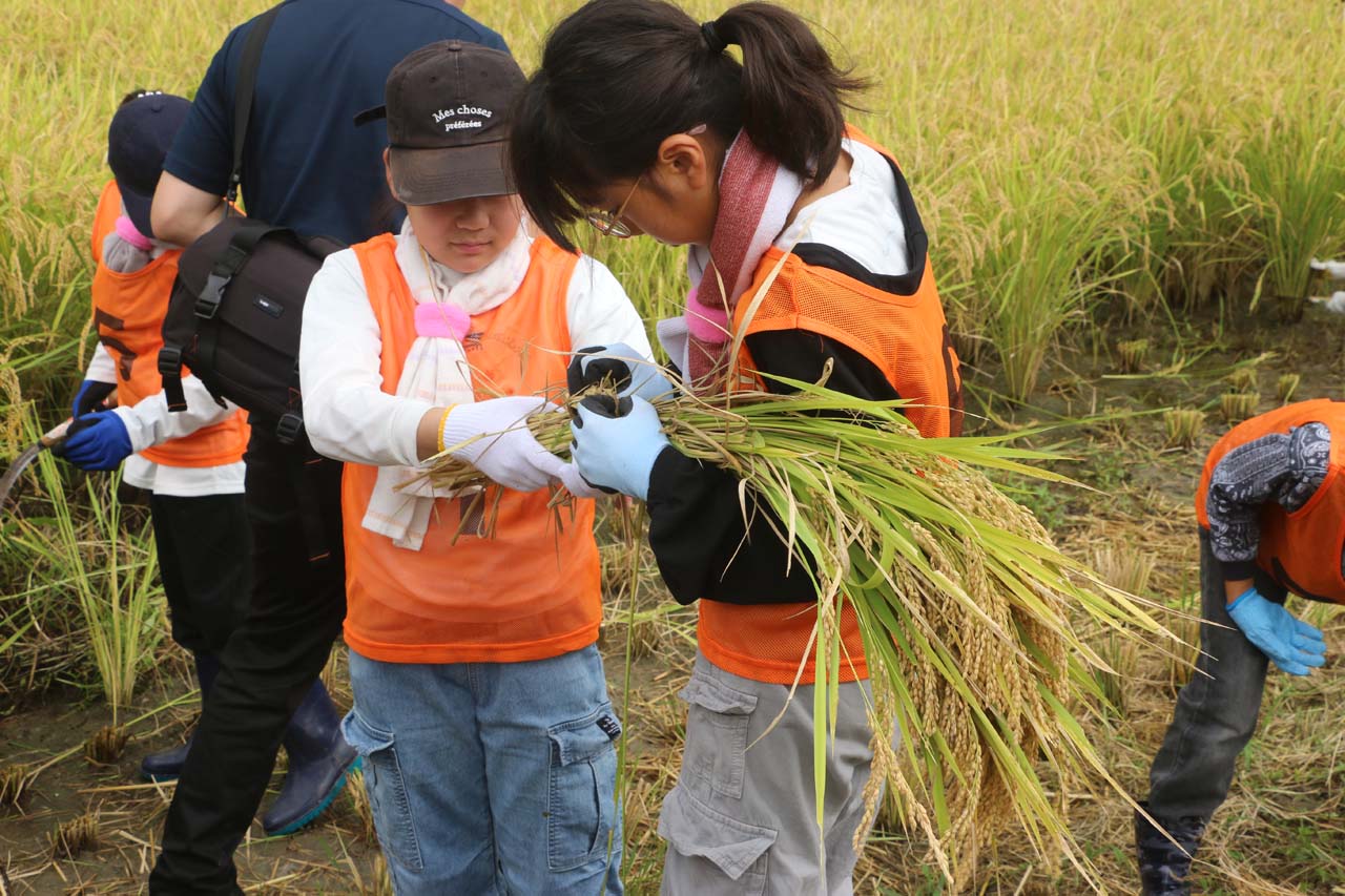 子ども達は普段では遊ぶこともない稲刈り後の田んぼの中で