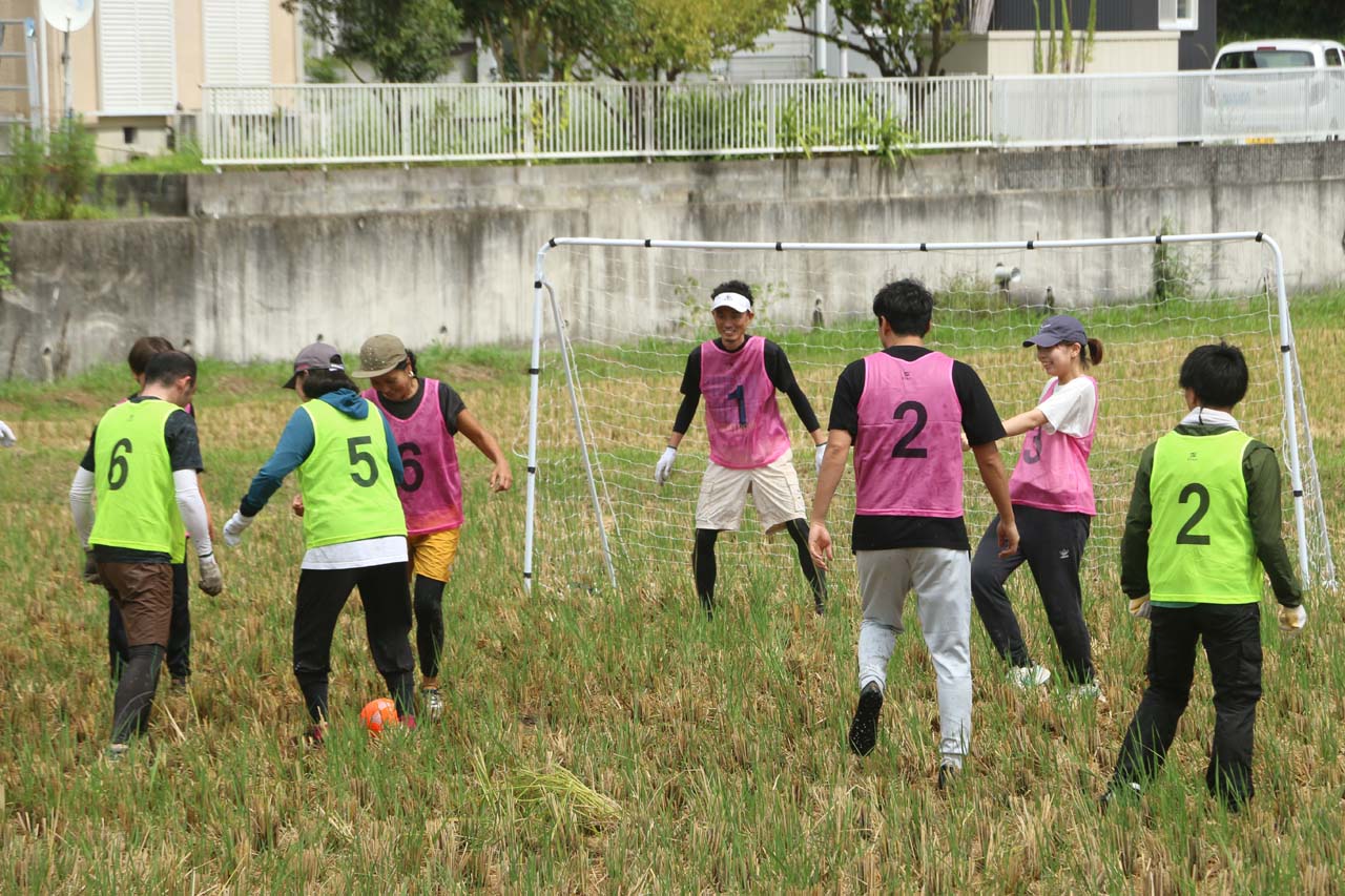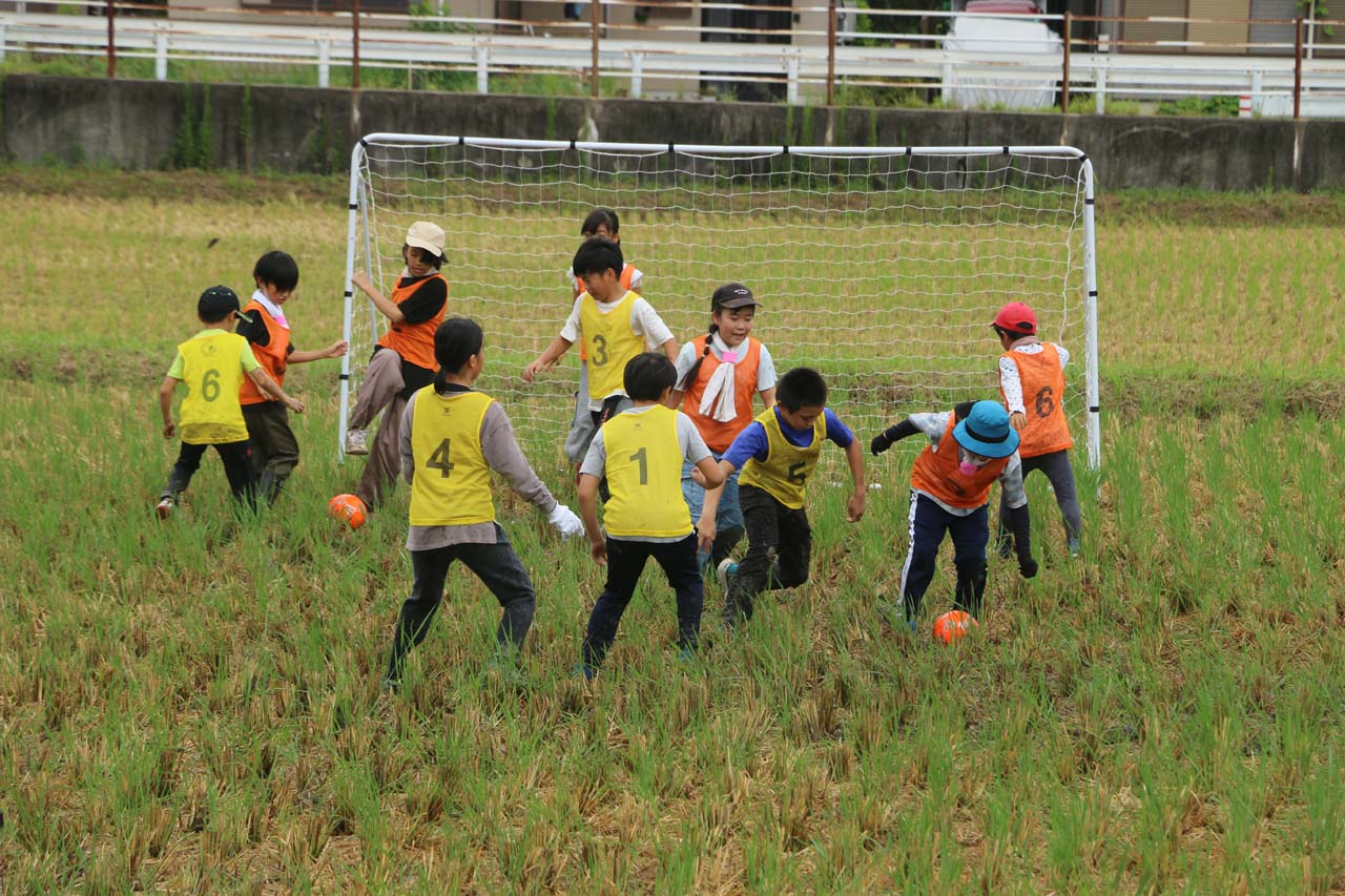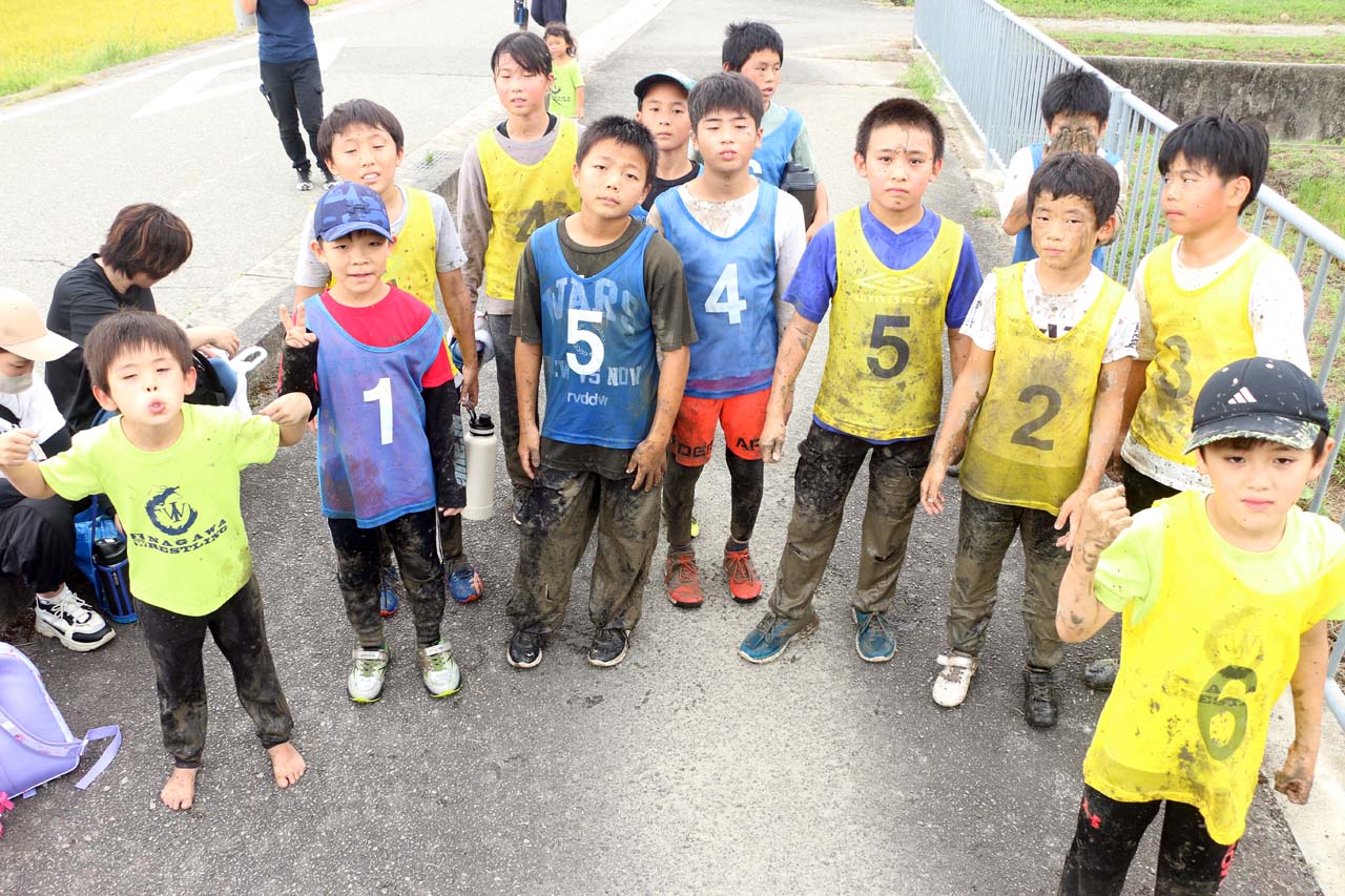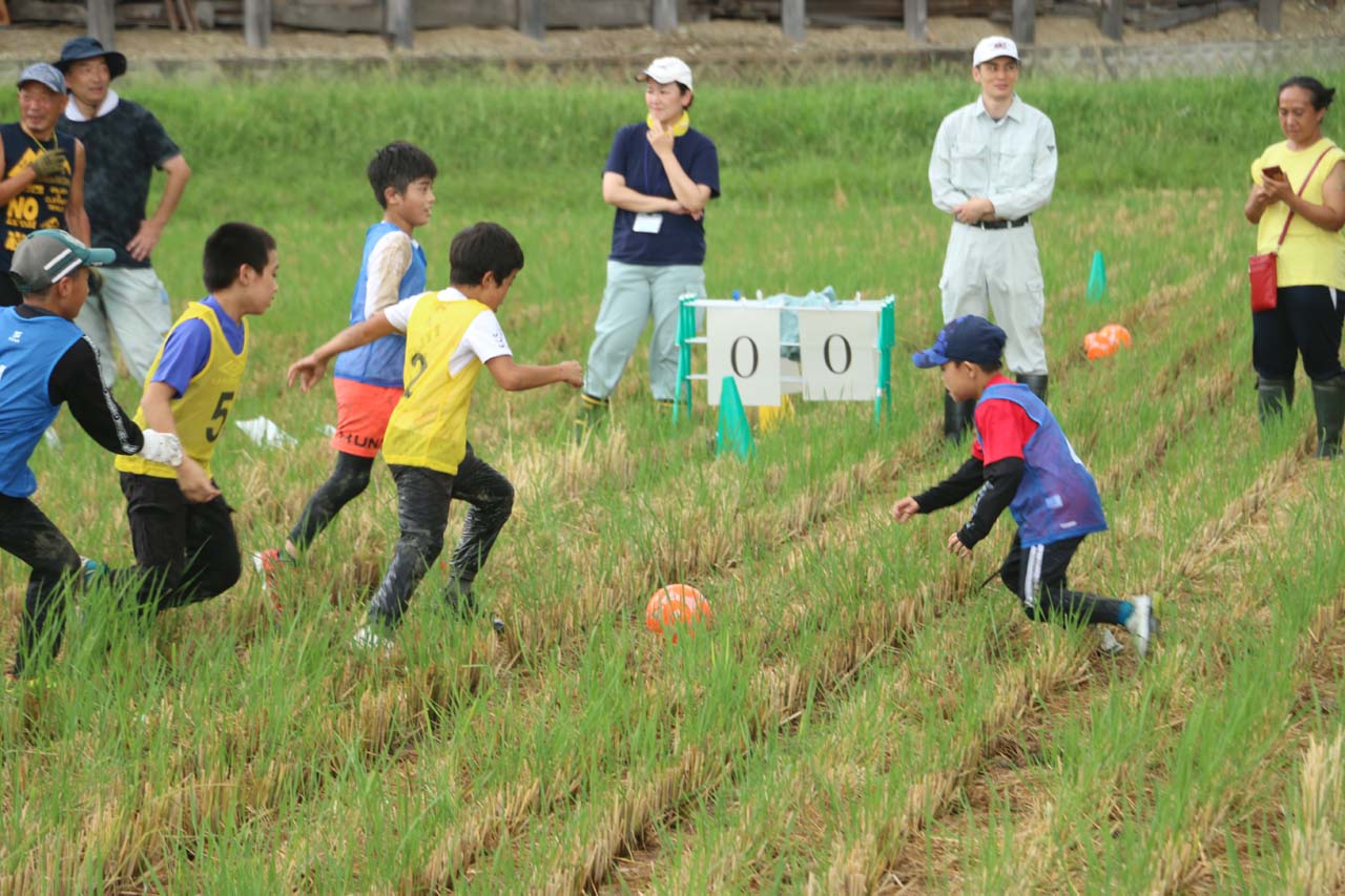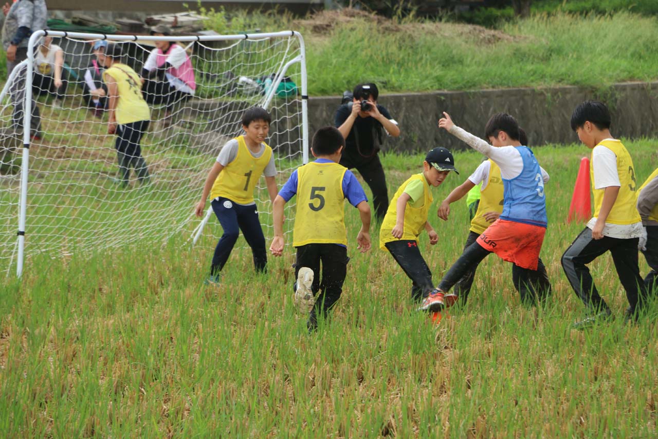田んぼサッカー参加者として小学生の部が3組と、中学生以上の大人の部2組が