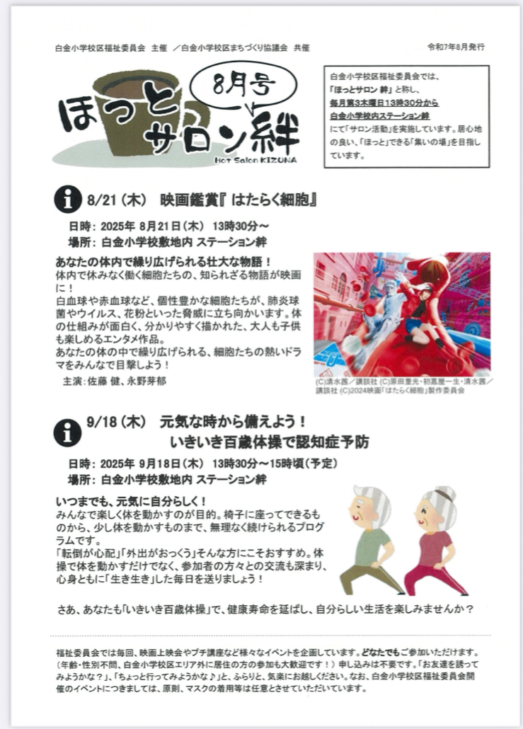 白金小学校区福祉委員会では、『ほっとサロン 絆』と称し、