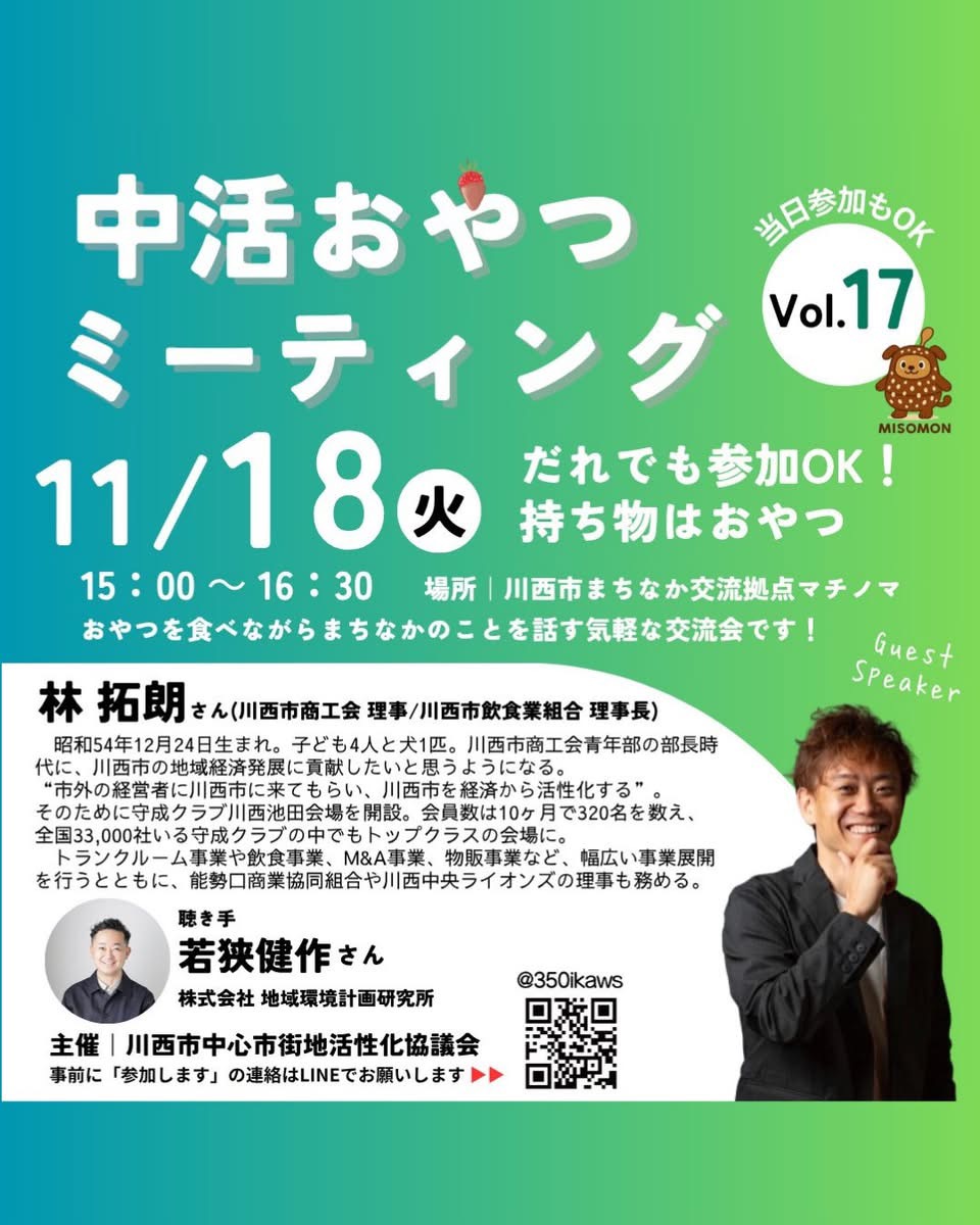 今回のゲストスピーカーは、林拓朗さん★(川西市商工会理事/川西市飲食業組合理事長)