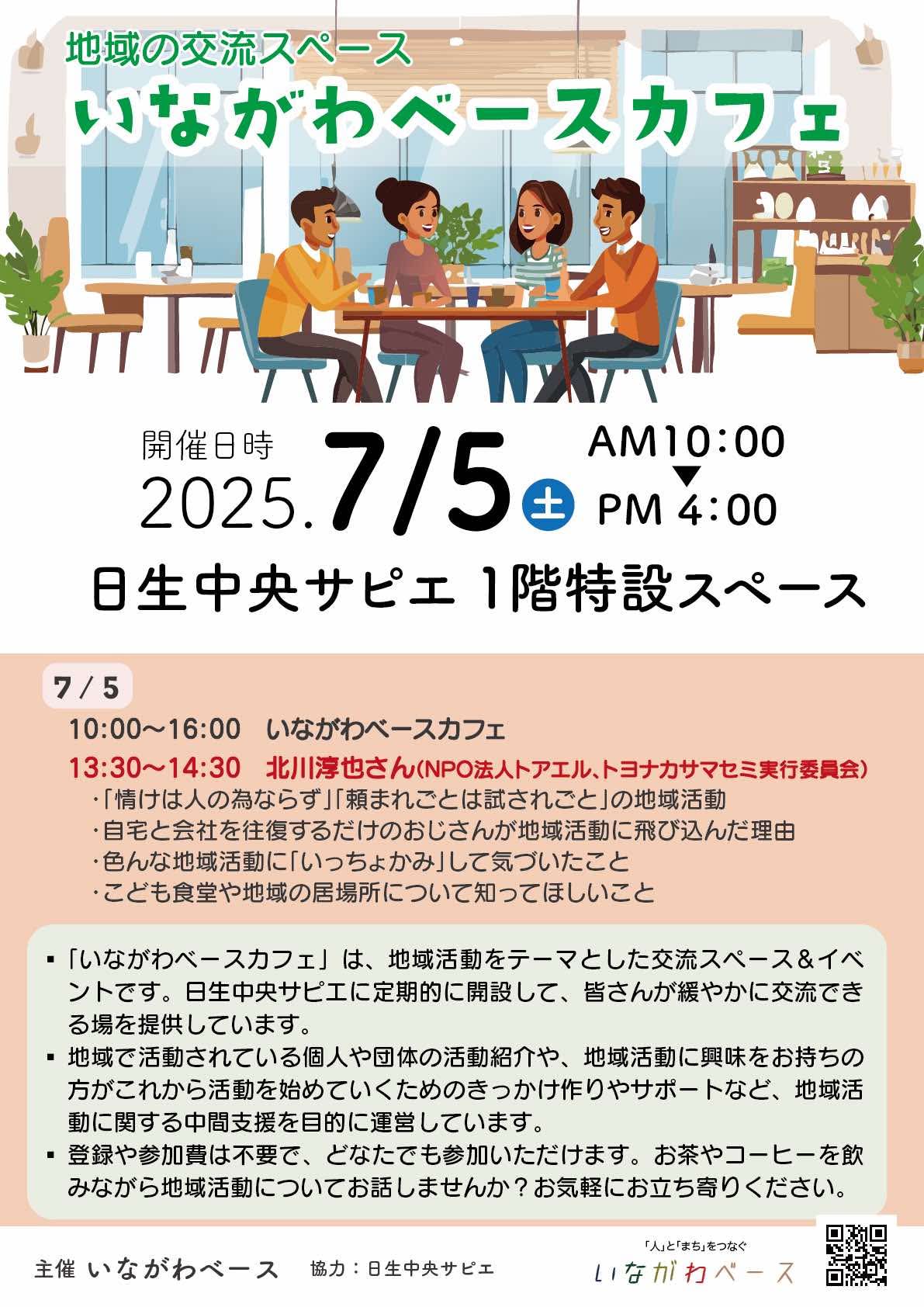 2025/7/5(土)、日生中央サピエに特設の交流スペース「いながわベースカフェ」を開設しました。