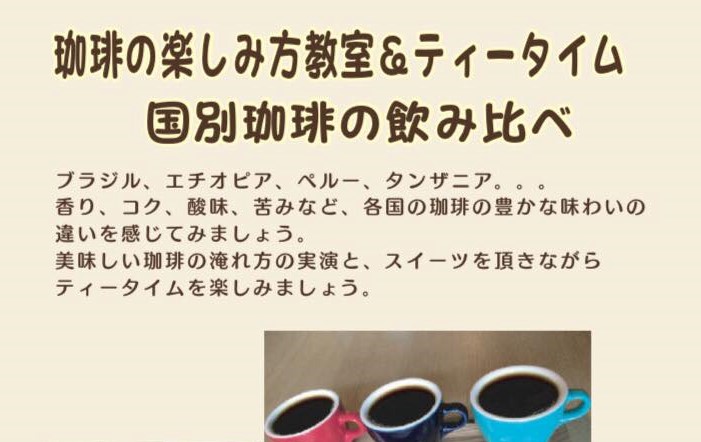珈琲の楽しみ方&ティータイム「国別珈琲の飲み比べ」